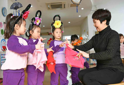 Le 11 décembre 2020, des élèves d'une école maternelle apprennent l'opéra de Pékin dans l'arrondissement de Tianjia'an de la ville de Huainan de la province de l'Anhui (dans l'est de la Chine). (Chen Bin/Pic.people.com.cn)
