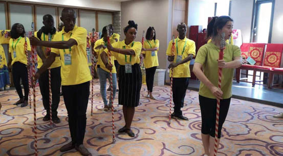 Le 28 ao?t 2019, la 4e fête des jeunes africains et chinois s'est ouverte à Beijing. Des représentants de jeunes africains découvrent l'opéra de Pékin. (Photo par Li Yan, journaliste du Quotidien du Peuple)
