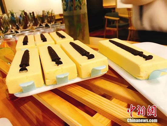 Ne sous-estimez pas ces petits desserts : afin de restituer au maximum la forme et les caractéristiques des objets anciens culturels, l'équipe de recherche et développement a consacré beaucoup d'efforts. Par exemple, ce gateau ? Lamelles de bambou des Qin ? est inspiré des règles de la dynastie Qin ? Lois faites sur chaque champ ?. Sur des ? feuillets simplifiés ? en chocolat noir, l'écriture est bien visible. L'équipe de recherche et développement a apporté plus de 10 modifications et ajustements au moule avant et après, dans le but de restituer la ? véritable apparence ? des vestiges culturels.
