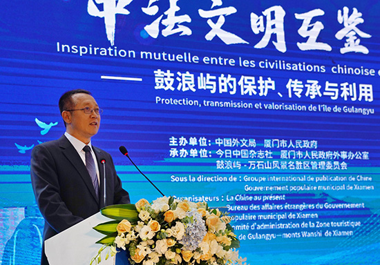 Le forum ? Inspiration mutuelle entre les civilisations chinoise et fran?aise : Protection, transmission et valorisation de l'?le de Gulangyu ?, sous la direction du Groupe international de publication de Chine (CIPG) et du gouvernement populaire municipal de Xiamen, et organisé par La Chine au présent, le Bureau des affaires étrangères du gouvernement populaire municipal de Xiamen et le Comité d'administration de la zone touristique ?le de Gulangyu―monts Wanshi, s'est déroulé sur l'?le de Gulangyu le 27 avril.