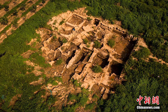 Une vue aérienne de l'atelier de frappe de pièces de monnaie découvert dans la province du Henan (centre de la Chine), le 9 ao?t 2021. (Photo / Chinanews.com)