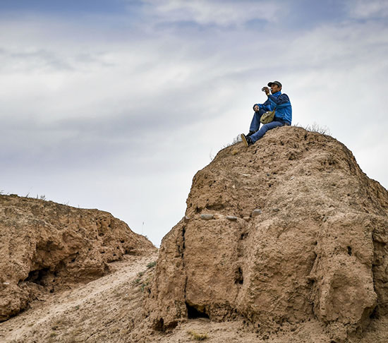 Li Shixiang repose sur les ruines de Xi'anzhou, une ville-forteresse de première ligne disputée pendant la guerre entre les dynasties Song et Xixia il y a environ 1 000 ans, à Haiyuan, dans la région autonome Hui du Ningxia, le mois dernier. (Feng Kaihua/Xinhua)