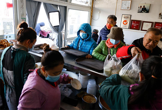 Le personnel sert du douzhi aux clients dans un restaurant à Beijing, le 26 novembre 2021. (Quotidien du Peuple en ligne/Peng Yukai)