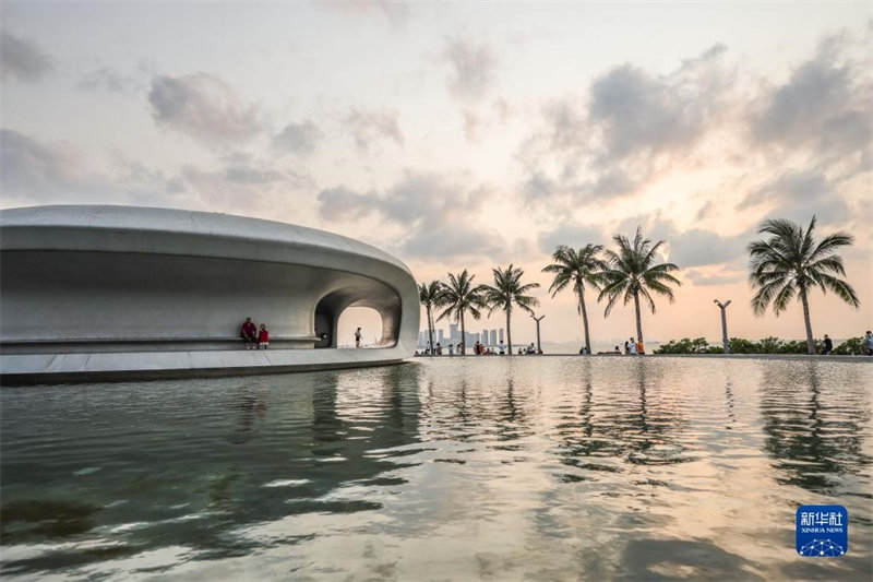 Batiment artistique emblématique de la baie de Haikou, à Hainan, elle semble coulée d'une seule pièce de béton. Elle comprend un espace de lecture, un espace audiovisuel multifonctionnel ainsi que diverses installations annexes, ce qui en fait un lieu idéal pour les habitants et les visiteurs souhaitant à la fois lire et se détendre.