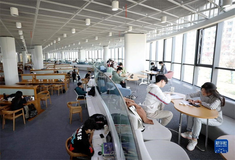 La bibliothèque orientale de l'Université chinoise du pétrole (Chine orientale), située à Qingdao, dans la province du Shandong (est de la Chine). (Photo / Xinhua)