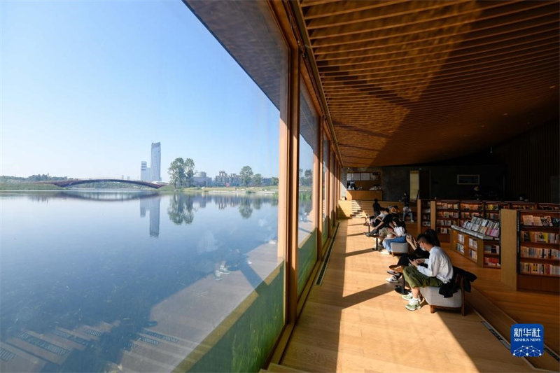 La maison de lecture du parc écologique le long de la rivière de Tongling, située à Tongling, dans la province de l'Anhui (est de la Chine). (Photo / Xinhua)