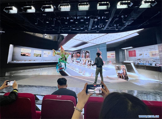 Présentation d'un programme d'expérience immersive numérique au Musée du Xinjiang, à Urumqi, dans la région autonome ou?goure du Xinjiang (nord-ouest de la Chine), le 16 mai 2022. (Xinhua/Zhou Ye)