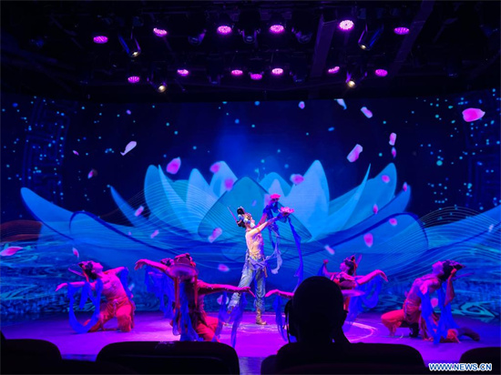 Des artistes donnent un spectacle au Musée du Xinjiang, à Urumqi, dans la région autonome ou?goure du Xinjiang (nord-ouest de la Chine), le 16 mai 2022. (Xinhua/Zhou Ye)
