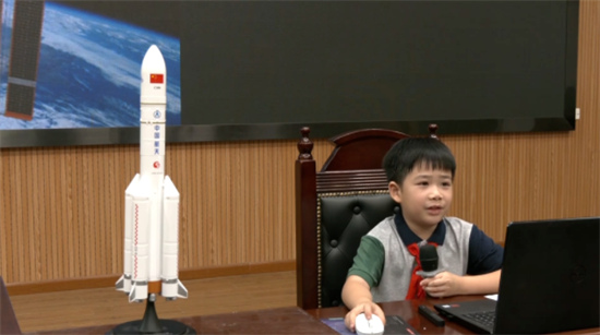 Chez lui, le petit Hongsen donne souvent des le?ons spatiales à ses parents. Son père lui a acheté un petit tableau noir et a partagé des vidéos de ses cours quotidiens sur les plateformes de médias sociaux, attirant de nombreux fans. C'est pourquoi, lors de la cérémonie de la rentrée scolaire de cette année, son école l'a invité à diffuser des connaissances spatiales auprès de tous les élèves.