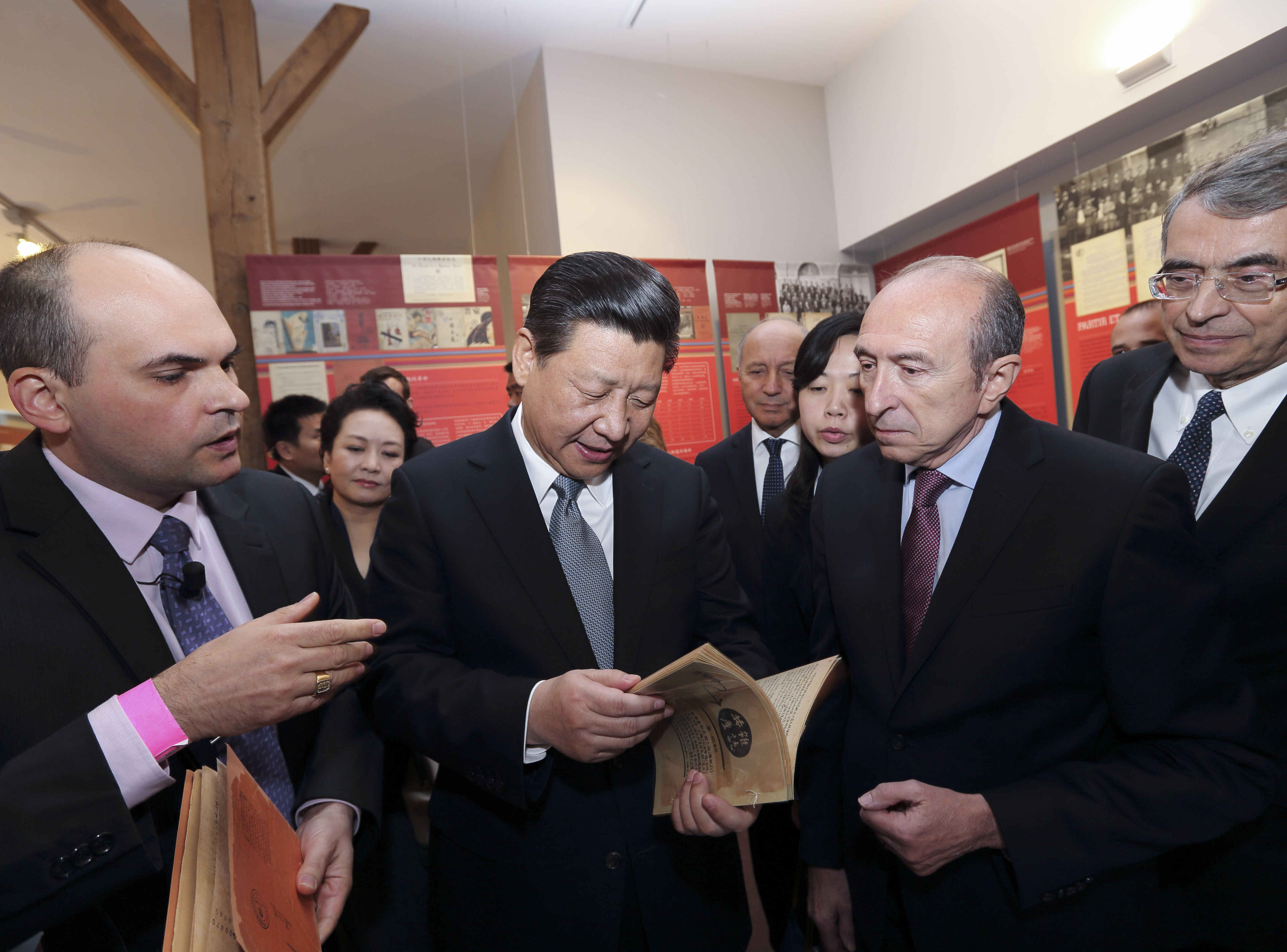 Le 26 mars 2014, le président Xi Jinping a visité l'ancien site de l'Institut franco-chinois de Lyon. (Lan Hongguang / Xinhua)