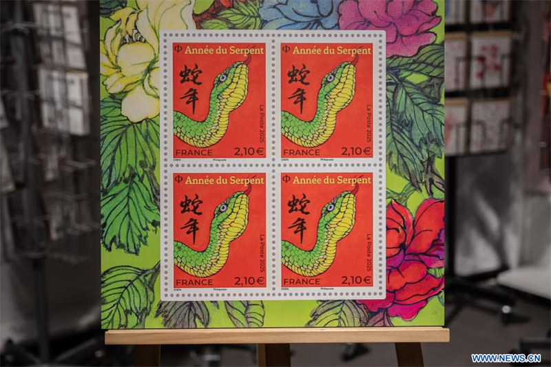 La Poste de France a publié samedi à Paris en avant-première deux blocs de timbres spéciaux consacrés à l'Année du serpent pour célébrer le Nouvel An chinois.