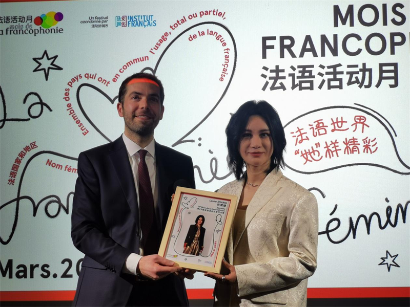 | Shang Wenjie (à droite), marraine du 29e Mois de la francophonie, a assisté à l'événement. (Sun Hongyu / le Quotidien du Peuple en ligne) |