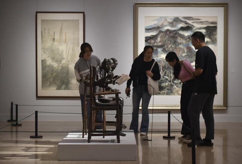 Des visiteurs admirent l'exposition nationale d'art Xieyi "Honorer l'esprit : hommage aux classiques" au Musée national des beaux-arts de Chine à Beijing, capitale de la Chine, le 27 septembre 2025. L'exposition a ouvert ses portes samedi et présente près de 600 ?uvres d'art.
