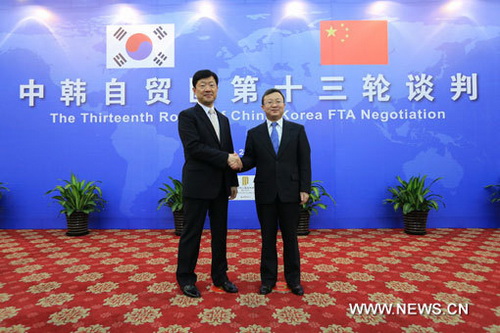 La Chine et la République de Corée ont entamé lundi à Beijing leur 13e cycle de négociations sur un accord de libre-échange.