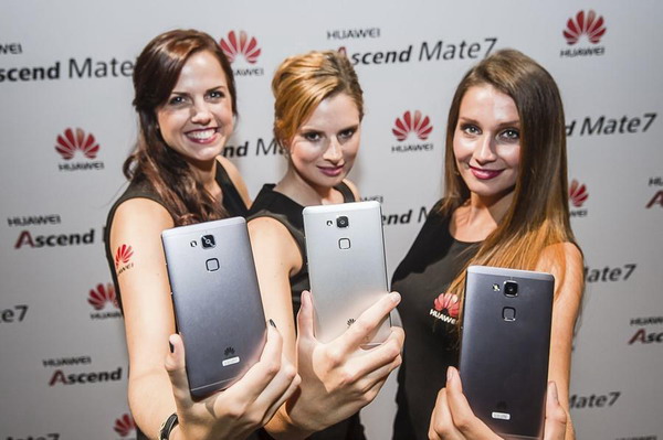 Le Huawei Ascend Mate7 entre de jolies mains, lors d'une cérémonie de lancement à Berlin, le 4 septembre 2014. [Photo/Agences]
