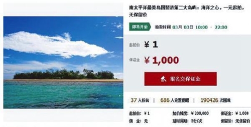 Quatre ?les aux Fidji, en Grèce, au Royaume-Uni et le Canada ont été mis aux enchères sur Taobao la plus grande plate-forme chinoise de shopping en ligne, avec trois d'entre elles vendues en moins de 12 heures.