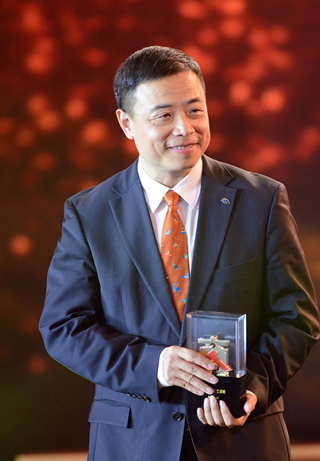 Chen Haibin, président de Zhejiang DIAN Diagnostics Co Ltd pose avec son prix lors d'une cérémonie à Hangzhou, le 21 janvier 2015. [Photo / IC]