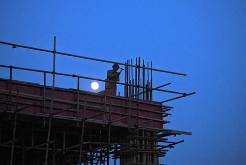 Un ouvrier travaille de nuit sur un chantier de construction dans la ville de Huai'an, dans la Province du Jiangsu, alors que les températures locales ont atteint 35 degrés Celsius. [Photo / IC]