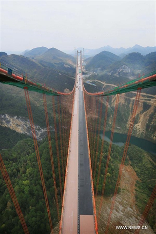 Le pont de 2.171 mètres de long réduira la distance entre le district de Weng'an et Guizhou à 38 km, contre 160 km auparavant, a-t-il indiqué.