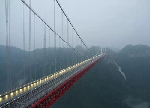 Situé à Xiangxi, dans la province du Hunan, le pont suspendu relie deux tunnels à une distance de 1 176 mètres. Il s'agit du troisième plus long pont de tunnel à tunnel au monde et le numéro un en Asie, qui à 330 mètres au-dessus du sol, enjambe le grand canyon d'Aizhai mesurant 1073,65 m de long avec une travée principale de 1176 m.