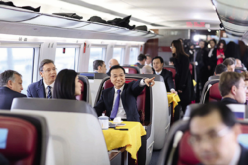 Le 25 novembre 2015, Li Keqiang invite les officiels des pays de l'Europe centrale et orientale participant au 4e sommet Chine-ECO à essayer le TGV chinois.