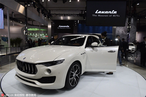Une Maserati Levante SUV est présentée au cours de la 14e édition de la Beijing International Automotive Exhibition, également connue sous le nom de Auto China 2016, à Beijing, le 25 avril 2016. [Photo / IC]