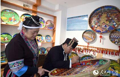 Ces dernières années, le comté autonome Dong de Sanjiang, dans la région autonome Zhuang du Guangxi (sud de la Chine), a développé des industries culturelles de lutte contre la pauvreté, et aidé les habitants locaux à sortir de la pauvreté par le biais d'initiatives multiples comme la création de bases, l'offre de formations, l'ouverture d'expositions, la construction de musées et autres expériences. Photo : Le Quotidien du Peuple.