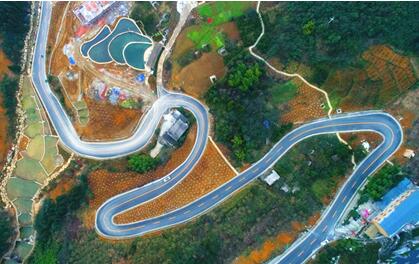 La nouvelle route pavée de la communauté de Linkou du village de Nanmen du canton de Heishan, située à 1000 mètres au-dessus du niveau de la mer dans la zone de développement économique et technologique de Wansheng à Chongqing. L'arrivée de cette route du village dans la petite communauté a grandement amélioré la réduction de la pauvreté et la prospérité du village, soulignant la fonction littéralement hématopo?étique de la revitalisation des zones rurales. Photo : Le Quotidien du Peuple.
