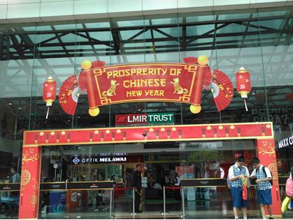 Un panneau accroché à l'entrée d'un centre commercial de Jakarta, en Indonésie, célèbre le Nouvel An chinois.