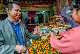 à l'heure actuelle, le paiement mobile en Chine devient de plus en plus populaire, détr?nant graduellement les transactions en espèces populariser progressivement le marché. Cette photo, prise le 23 décembre 2017 sur le marché alimentaire de Weiwu Road à Nanning, capitale de la région autonome Zhuang du Guangxi, on voit des clients payant leurs achats à l'aide d'un téléphone mobile en scannant le code à deux dimensions. (Source : le Quotidien du Peuple)