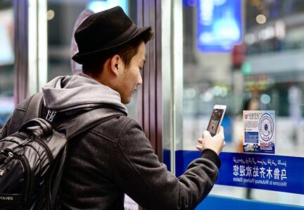 Le 28 février 2018 a été officiellement ouverte la plate-forme d'alarme intelligente rapide de la police des chemins de fer d'Urumqi Railway Police. La photo montre un passager scannant le code à deux dimensions du compte WeChat de la plateforme d'alarme de la police. (Photo Ning Jian / le Quotidien du Peuple)