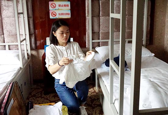Une demandeuse d'emploi déballe ses affaires dans un logement temporaire fourni par le gouvernement de Chengdu, capitale de la province du Sichuan. (Li Like / Xinhua)