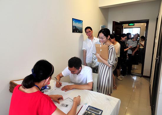 Un nouveau dipl?mé fait une demande d'appartement à prix réduit dans le cadre d'un programme d'encouragement à Wuhan, capitale de la province du Hubei. (Shi Wei / Xinhua)