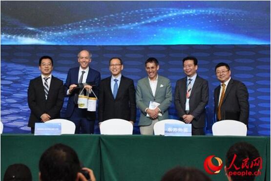 Ross McMahon a signé l'accord avec deux bo?tes de lait en poudre dans ses mains, sous les applaudissements du public. (Photo Zeng Shurou / Le Quotidien du Peuple en ligne)