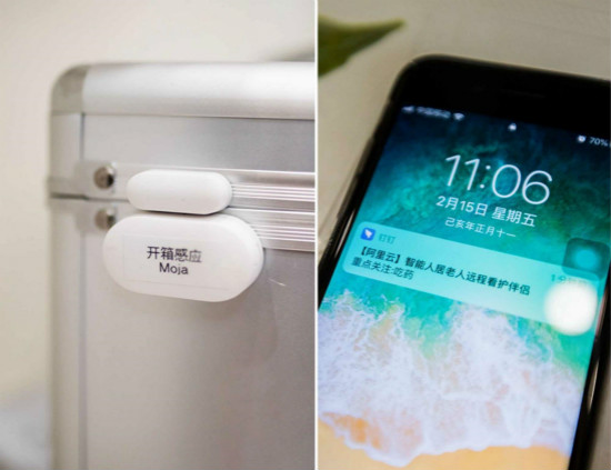 Un ensemble complet de solutions de téléassistance personnalisées par les ingénieurs d'Alibaba Cloud IoT peut permettre une téléassistance 24 heures sur 24. Si la bo?te à pharmacie intelligente n'est pas activée, le téléphone recevra une alerte à distance. (Photo Xu Kangping /vip.people.com.cn)