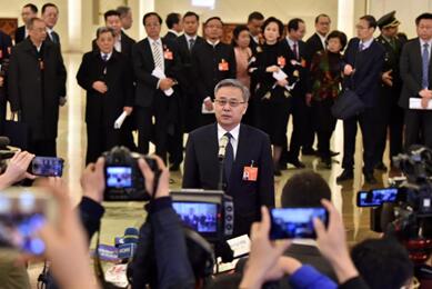Le matin du 5 mars, après la séance d'ouverture de la deuxième session de la 13e Assemblée populaire nationale, Guo Shuqing, président de la Commission de réglementation du secteur bancaire chinois, a répondu aux questions des médias dans le cadre du ? Canal des représentants ? dans le Grand Palais du Peuple à Beijing. (Photos / vip.people.com.cn)