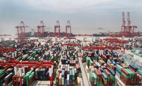 Photo montrant une vue de conteneurs empilés lors de la quatrième phase du port en eau profonde de Yangshan, le plus grand terminal de conteneurs automatisé au monde, le 17 mai 2018. En juin 2018, 8 696 entreprises à participation étrangère avaient été enregistrées dans la Zone franche de Shanghai depuis la création de cette dernière, avec des capitaux étrangers contractuels totaux dépassant 110,24 milliards de dollars. Plus de 98% de ces entreprises ont été approuvées par un mécanisme de dép?t en ligne. (Photo / Xinhua)