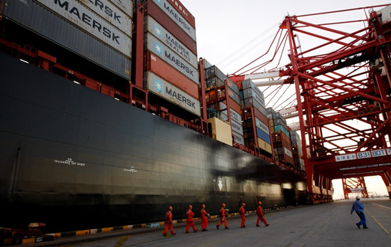 La Zone franche de Shanghai a publié la première liste négative d'accès aux investissements étrangers de Chine en septembre 2013. En 2018, la dernière version des mesures de gestion de la liste négative a été réduite à 45. Selon les statistiques, en juin 2018, après l'entrée en bourse de la Zone franche de Shanghai, 8 696 entreprises à participation étrangère avaient été récemment créées, attirant des investissements étrangers contractuels atteignant 110,24 milliards de dollars. La photo montre des ouvriers passant devant un porte-conteneurs amarré au terminal du port en eaux profondes de Yangshan, dans la Zone franche de Shanghai. (Source / Xinhua)