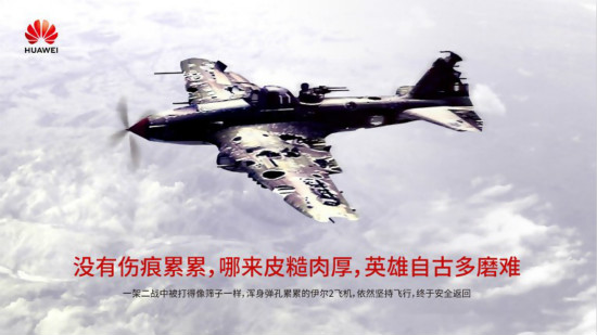 Ren Zhengfei : J'ai vu cette photo sur un site Internet je me suis dit qu'elle ressemblait à la situation de notre entreprise, je l'ai envoyée à tout le monde. L'opérateur BG pensait que cet avion, c'était lui-même. Plus tard, il a été découvert que l'opérateur BG n'avait pas de problèmes majeurs, car il s'était préparé pendant plus de dix ans. Notre situation actuelle, c'est voler tout en réparant l'avion et faire de notre mieux pour revenir.