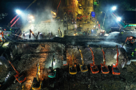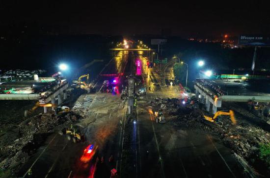 La vidéo, publiée sur une plate-forme de médias sociaux à l'étranger, montre un pont de 50 mètres de long sur l'autoroute Beijing-Shanghai en train d'être démoli en une nuit.