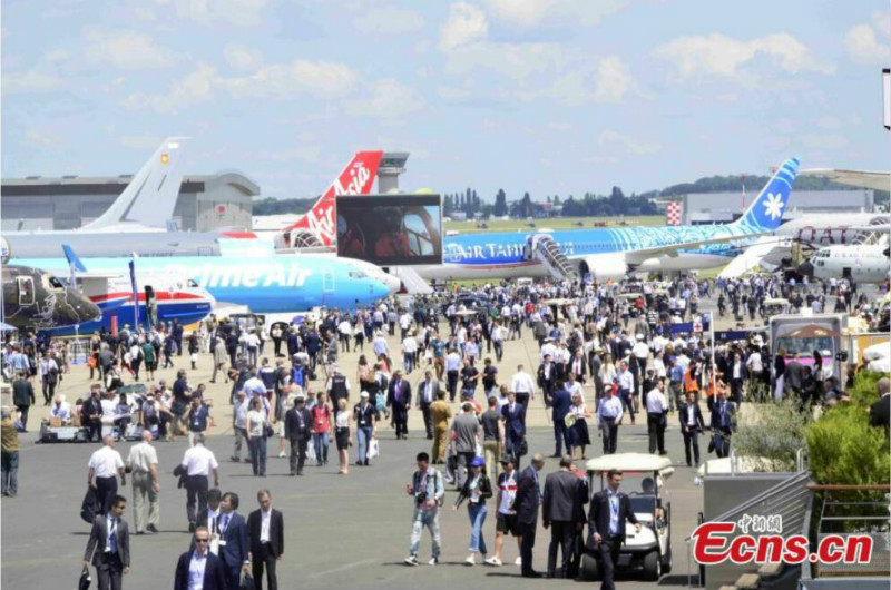 Photo montrant la 53e édition du Salon international de l'aéronautique et de l'espace de Paris 2019, le 17 juin 2019. Attirant 2 400 exposants et 350 000 visiteurs, le Salon aéronautique, qui se tient au Parc des Expositions du Bourget à Paris est le plus grand événement aérospatial du monde.