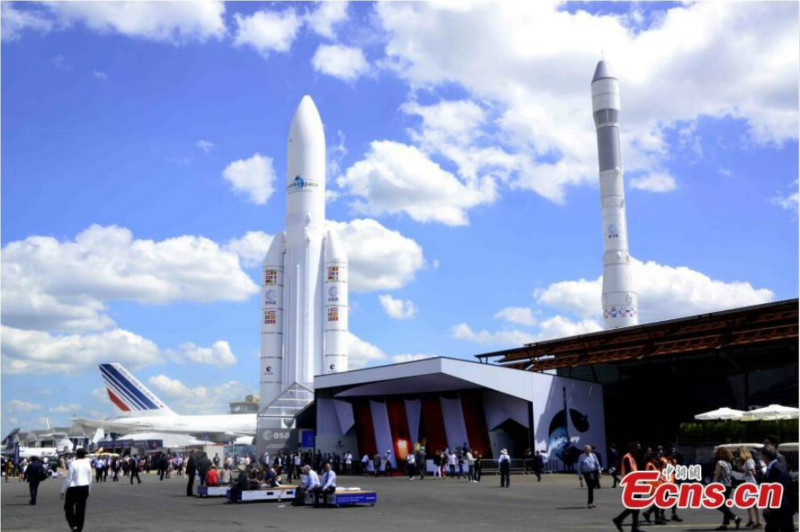 Photo montrant la 53e édition du Salon international de l'aéronautique et de l'espace de Paris 2019, le 17 juin 2019. Attirant 2 400 exposants et 350 000 visiteurs, le Salon aéronautique, qui se tient au Parc des Expositions du Bourget à Paris est le plus grand événement aérospatial du monde.
