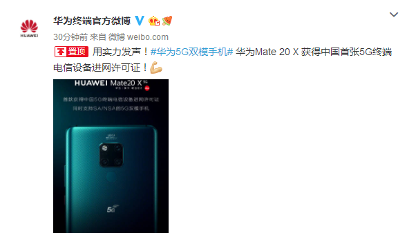 Le Mate 20X de Huawei a obtenu la toute première licence qui permet à ses équipements terminaux de télécommunication d'entrer sur le réseau 5G en Chine, a annoncé Huawei le 25 juin sur son compte officiel Sina Weibo.