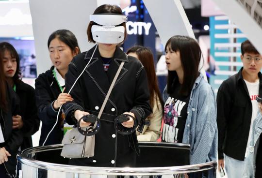 Un visiteur découvre un casque de réalité virtuelle Baidu lors d'une exposition de haute technologie à Fuzhou, capitale de la province du Fujian (sud-est de la Chine). (Photo Zhu Xingxin / China Daily)