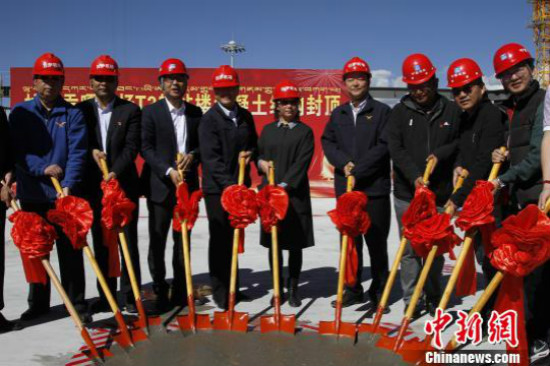 Photo montrant la cérémonie organisée pour marquer une étape importante de la rénovation de l'aéroport Gonggar de Lhassa, capitale de la Région autonome du Tibet dans (sud-ouest de la Chine), le 11 octobre 2019.