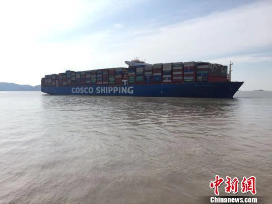 Le navire ? Tianshengzuo ? de COSCO, transportant des conteneurs entiers de marchandises destinées à la CIIE, arrive dans le port de Yangshan à Shanghai. (Photo Zhou Xiaodong)