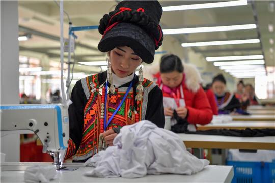Une femme travaille dans un atelier de fabrication de vêtements à Shaoxing, dans la province du Zhejiang, ce qui aide les gens à sortir de la pauvreté. (Zhang Chaoqun / Xinhua)