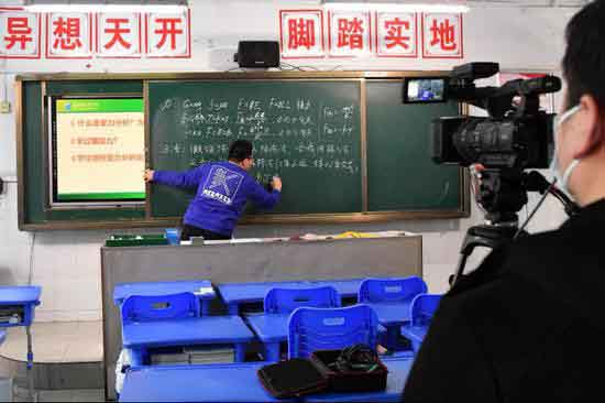 Un enseignant de lycée propose des cours en ligne le 2 février 2020 à Zhengzhou, capitale de la province du Henan (est de la Chine). Les écoles en Chine ont reporté le début du nouveau semestre en raison de l'épidémie de nouveau coronavirus. (Photo / Xinhua)