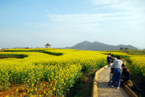 Le 15 mars 2020, des fleurs de colza qui s'étendent sur des dizaines de milliers de mu (mu étant l'unité de mesure de superficie qui correspond à 0,0667 hectare) dans le village de Wujiao de la ville de Ruichang de la province du Jiangxi se sont épanouies, attirant des visiteurs au début du printemps. Zhang Xuxiong/Photo du Quotidien du Peuple