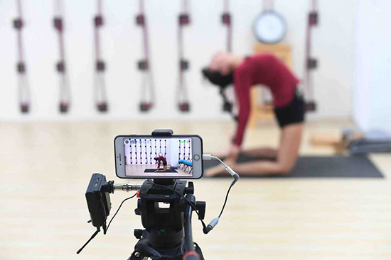 Un professeur de yoga donne des cours via une plateforme de diffusion en direct à Guangzhou, capitale de la province du Guangdong (sud de la Chine), le 7 février. (Photo / China News Service)